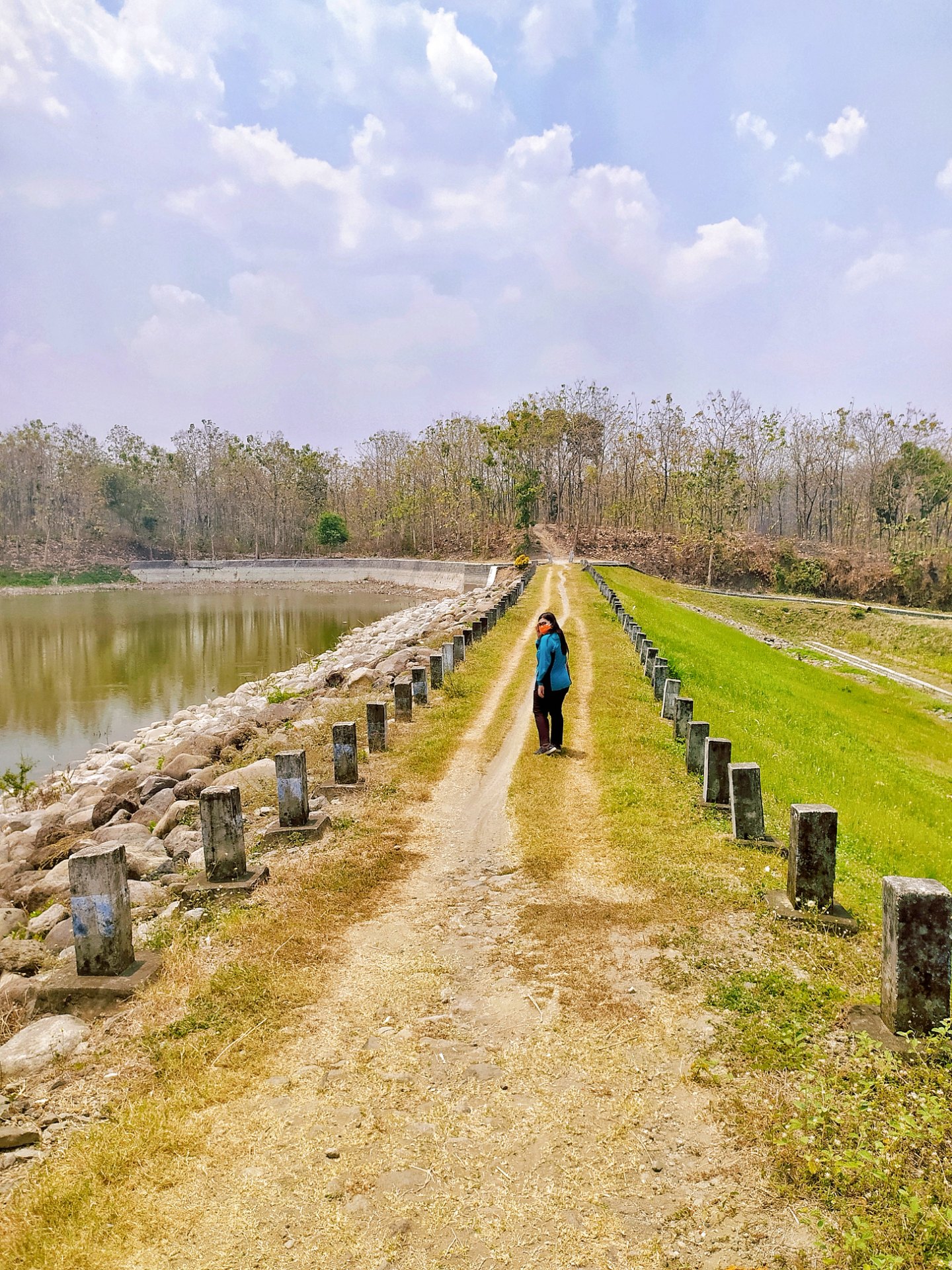 Siapa sangka, kami yang menerobos jalanan dengan medan berbatu yang terjal seperti perjalanan off road akhirnya menemukan "hidden gems" yaitu Waduk Embung di Desa Kepuhrejo, Kudu. Suasana semakin syahdu dengan cuaca yang mendung. Selain itu pepohononan yang menjulang tinggi menghembuskan semilir angin yang sejuk.