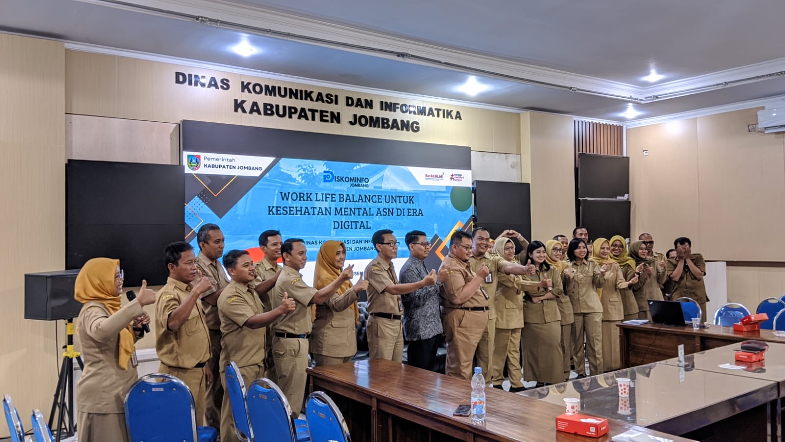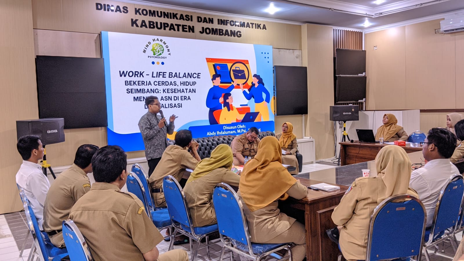 JOMBANGKAB — Dinas Komunikasi dan Informatika (Diskominfo) Kabupaten Jombang menggelar kegiatan bertajuk "Work-Life Balance untuk Kesehatan Mental ASN di Era Digitalisasi" pada Senin, (15/12/2025), bertempat di Aula Diskominfo Jombang. Kegiatan yang diikuti seluruh pegawai dilingkungan Kominfo ini bertujuan untuk meningkatkan kesadaran dan memberikan solusi praktis bagi Aparatur Sipil Negara (ASN) dalam menjaga kesehatan mental di tengah tuntutan pekerjaan yang semakin terdigitalisasi.