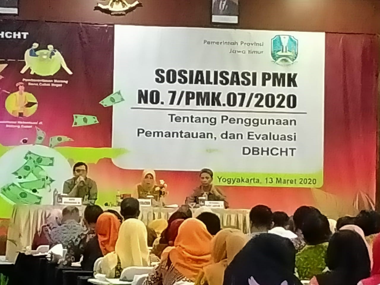 Rapat juga dihadiri oleh perwakilan direktorat jenderal perimbangan keuangan kementerian keuangan republik indonesia. evaluasi ini menjadi suatu hal yang sangat penting mengingat pada tahun 2020 terjadi beberapa perubahan aturan penggunaan DBHCHT melalui peraturan Menteri Keuangan RI Nomor;7/PMK.07/2020 tentang penggunaan, pemantauan dan evaluasi DBHCHT.