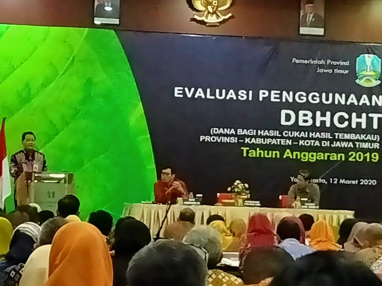 Rapat evaluasi ini bertujuan untuk menyamakan persepsi dalam memandang ketentuan, kebijakan maupun implementasi penggunaan dbhcht agar terdapat keseragaman pemahaman dan langkah tindak sehingga tercipta sinergi dalam pengimplementasian kegiatan yang didanai oleh cukai hasil tembakau dan memperkuat jalinan kemitraan antar dinas yang membidangi dana bagi hasil cukai hasil tembakau baik di tingkat provinsi maupun kab./kota di jawa timur dalam bentu koordinasi maupun pertukaran informasi terkait penggunaan DBHCHT serta melakukan identifikasi terhadap kondisi terkini serta menggali dan mengidentifikasi kendala/kesulitan yang dihadapi oleh provinsi/kabupaten dan kota se jawa timur serta mencari solusinya.(*)