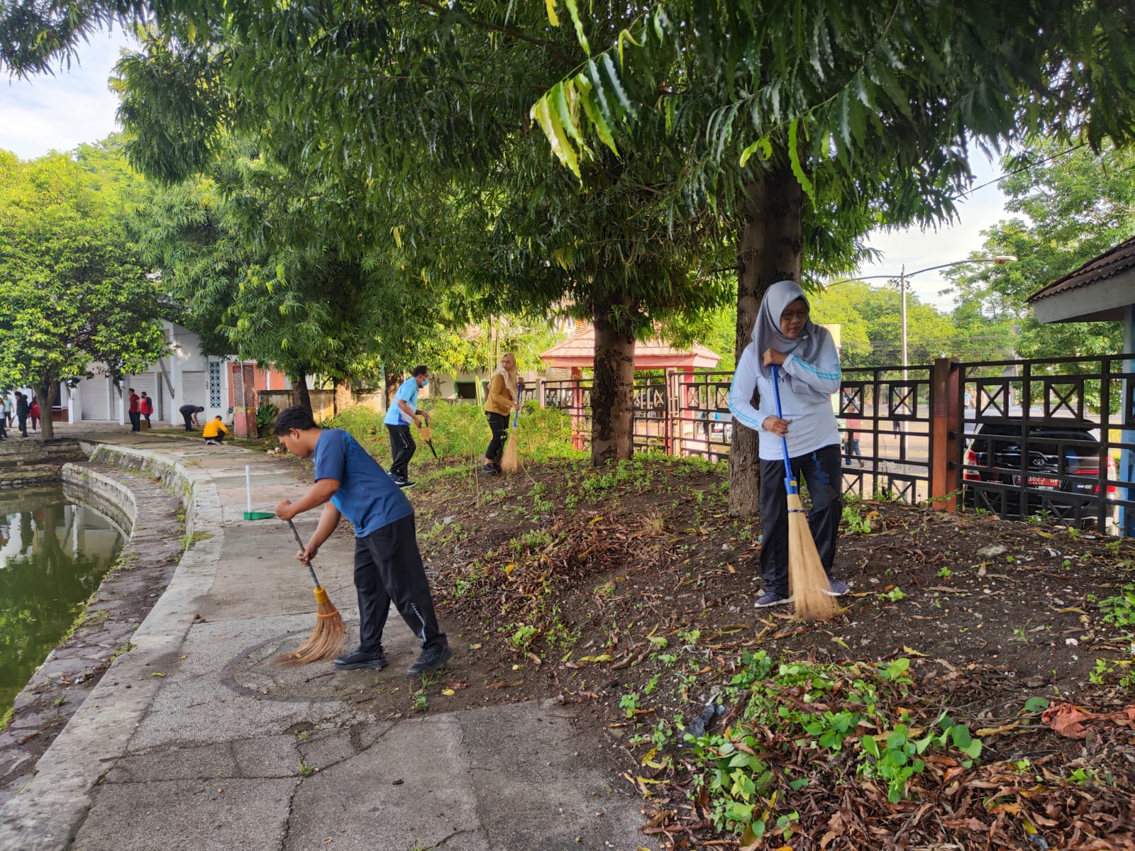Sambil mengayunkan sapu, menyabit rumput, menyapu dedaunan Tim dari Dinas Kominfo juga melakukan pengecekan lapangan secara visual. Diantara riuhnya kegiatan bersih-bersih, mereka menangkap momen-momen gotong royong tersebut.