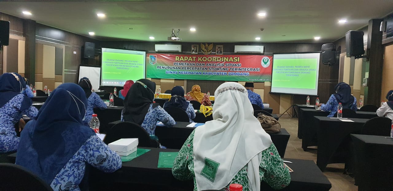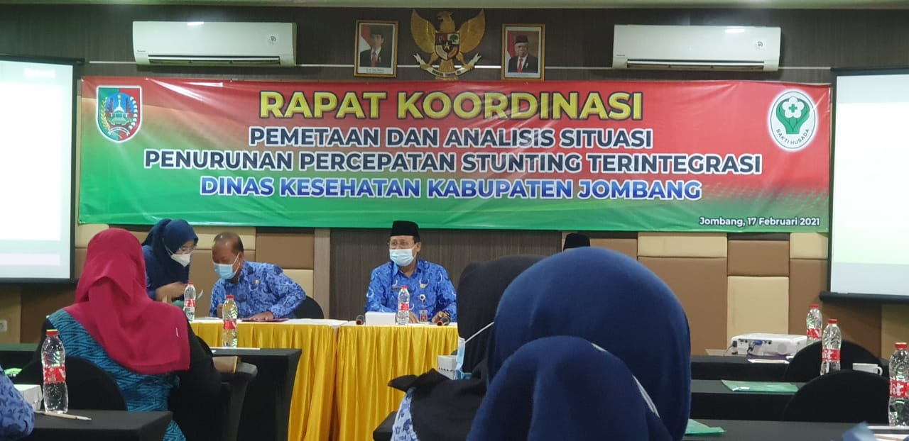 Jombangkab, Kominfo - Pada hari Rabu, Tanggal 17 Februari 2021 Dinas Komunikasi dan Informatika Kabupaten Jombang melalui Bidang Statistik dan Persandian menghadiri Rapat Koordinasi Pemetaan dan Analisis Situasi Penurunan Percepatan Stunting yang Terintegrasi. Rapat diadakan di Ruang Syafa Marwah GreenRed Hotel Syariah Jln. Soekarno-Hatta 55 Jombang oleh Dinas Kesehatan Kabupaten Jombang. Rapat tersebut dihadiri oleh Bapak Sekretaris Daerah (Sekda), Ahmad Jazuli. Rapat tersebut membahas Penetapan 11 Desa Prioritas untuk Program Penurunan Stunting tahun 2022 yang mana sebelas desa tersebut seperti berikut :