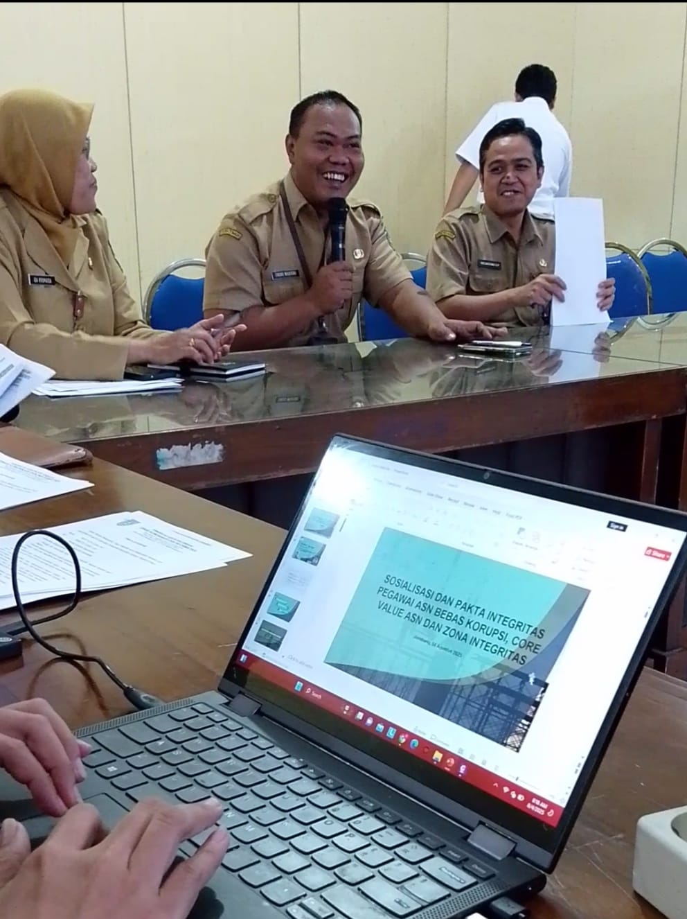 Kegiatan ini dilanjutkan dengan penandatanganan Pakta Integritas oleh seluruh ASN. Dokumen tersebut berisi janji untuk menerapkan dan menjunjung tinggi nilai-nilai Core Value ASN BerAKHLAK. Diantaranya menolak segala bentuk suap, gratifikasi, dan korupsi. Menghindari konflik kepentingan dan nepotisme. Melaporkan kekayaan secara jujur dan transparan. Berpartisipasi aktif dalam upaya pencegahan KKN.